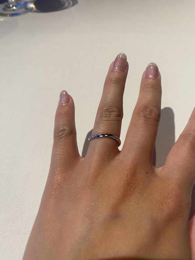 元々細いリングを探していて、何個か試着していくとペルセウスを着けてみたらとても可愛かったです!ダイヤもたくさんつけたいし、でもちょっと他の人と違うデザインを選びたいと思ってた私にはぴったりでした。細身のデザインだし、ダイヤの位置をずらすとまた違う可愛さで2wayになるところがまたポイントでした!