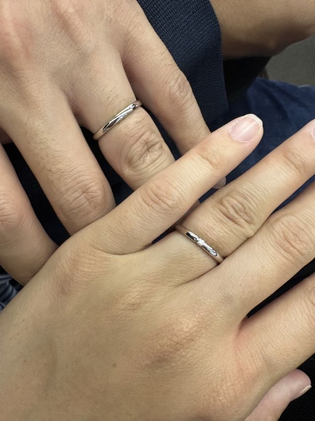 男性の方は無地のシンプル、プラチナの指輪。女性の方はシンプルでダイヤモンドが一石入っている指輪です。着け心地もいいです。とってもシンプルですがダイヤが綺麗に見えます。内側には刻印とピンクダイヤを入れてもらいました。ペアで20万円ぐらいで購入できました。