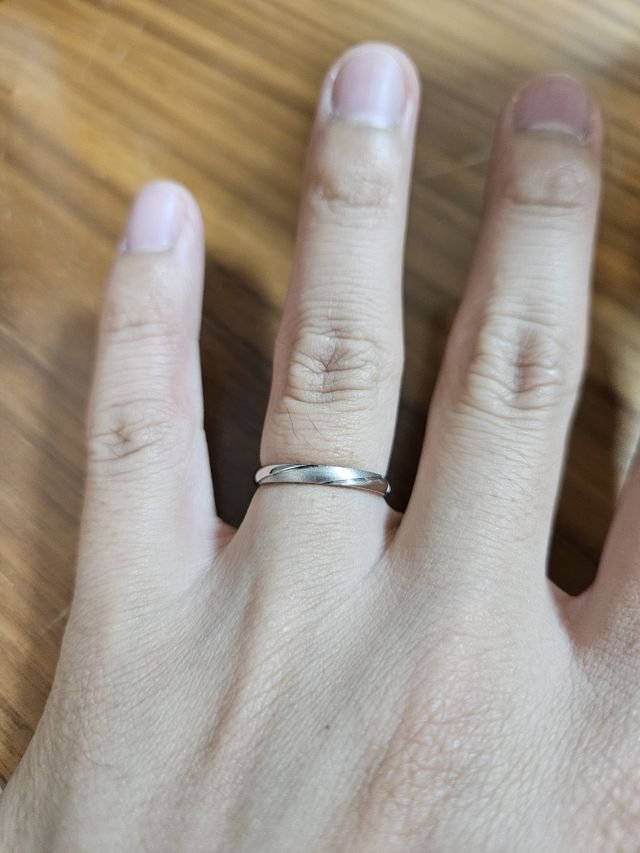普段指輪を着けてこなかったのでゴツゴツしたデザインと厚みのある指輪が苦手だったのですが、どちらも見事にクリアしてくれるデザインに出会えました!着けてることを忘れるくらいの着け心地です。値段も高くなくとっても気に入っております。