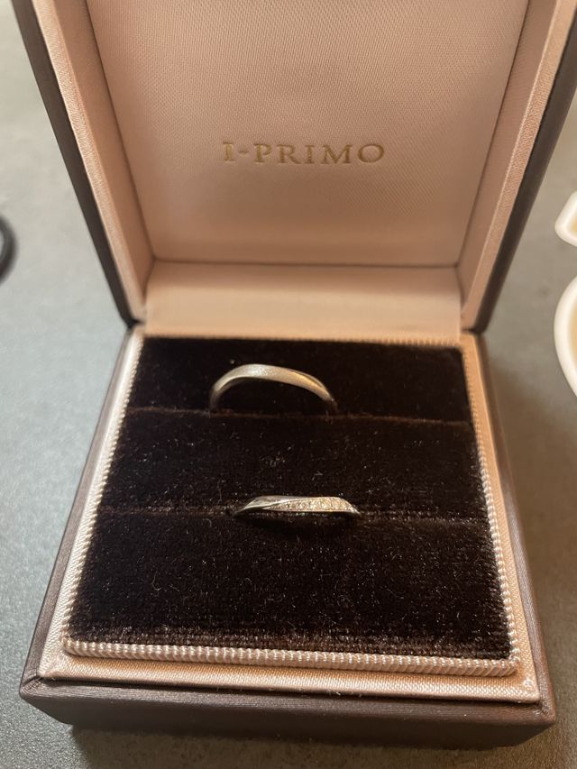 指輪は艶消し加工を行ったタイプと、ウェーブのかかったデザインにしました。指のタイプには合わないのかもしれないのですが、可愛かったのと、店員の方の後押し