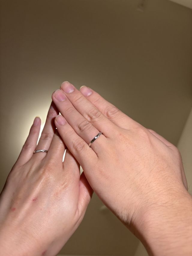 夫婦で同じデザインの指輪です!