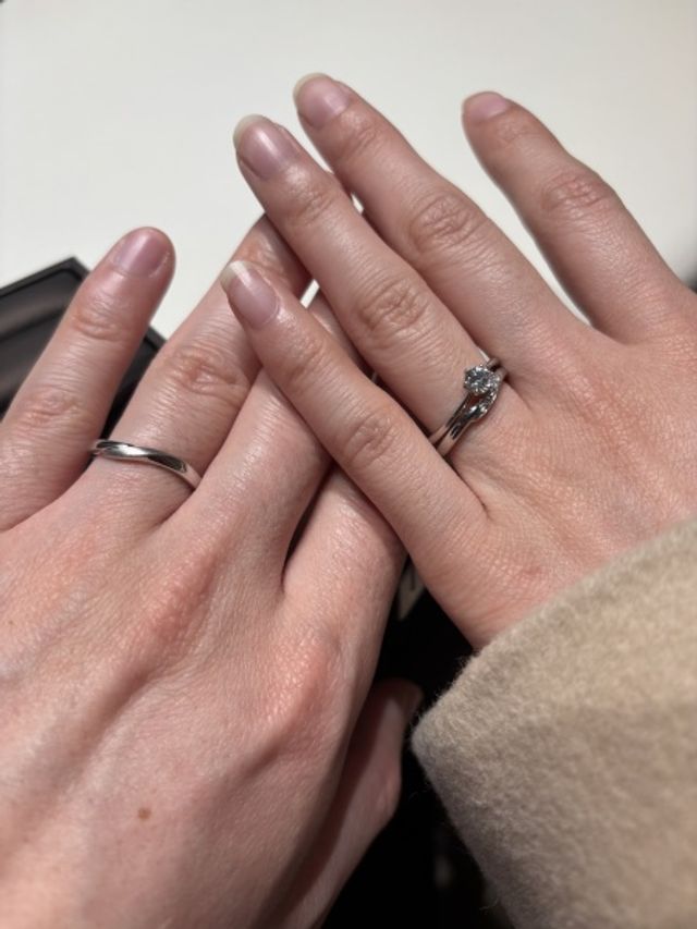 2人で選んだのでお互いの好きなデザインで購入しました!ペアのリングではなかったけどそれでもとてもそれぞれが合うデザインで満足です!