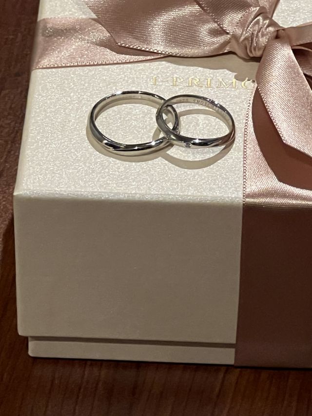 シンプルなデザインですが、華があります。耐久性も問題なく、女性側のリングには一石のダイヤモンドが埋め込まれていて、高級感があります。ただ毎日つけていても、仕事や家事の邪魔にならず、自然な着け心地感があります。