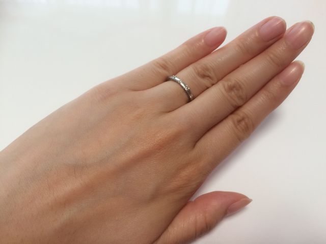婚約指輪を購入する際、結婚指輪も一緒に購入すると割引され、特典もいただけるとのことでしたので、その時に一緒に選びました。婚約指輪と重ね着けしたかったので、重ね着けに一番合うと思った指輪を選ばせていただきました。