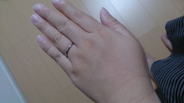 シンプルなタイプの指輪がほしいなと思って探していたら、店員さんが勧めてくれた中で一番かわいくて好みにピッタリで一目惚れでした。指にはめた時もイメージ通りでしっくりきて、結婚指輪の上品さがとても気に入ったのでそれが決め手となりました。