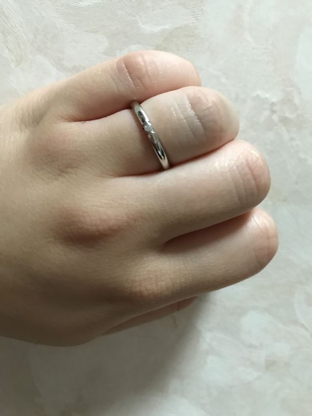 シンプルなのがほしくて探していたら、どんなときにでもつけれそうなのに、細めで真ん中に一つだけダイアモンドがついているのが可愛いデザインだなと思い決めました。なによりお値段が安く質も良くて良かったです。
