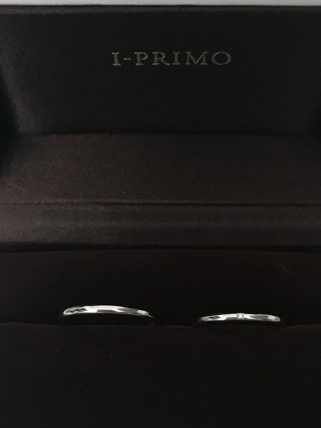 ダイヤがつくと高くなるし個人的にもダイヤは入っていなくてもいいかなと思っていましたが他社さんでいざ試着してみるとやはりなにもついてないよりは付いていた方がいいなと感じ、旦那には言えず、自分の中で諦めていましたが、アイプリモさんでダイヤつきのシンプルなデザインのリングの説明を受けた時、つくりがしっかりしていてダイヤもついているのに価格がリーズナブルで、これがいいと即決しました。