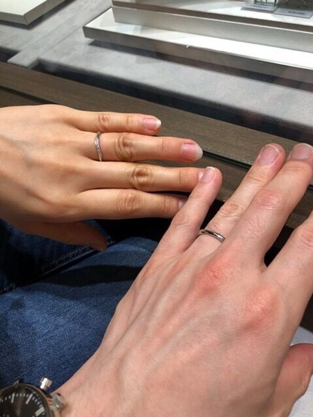 お互いに1番指にしっくりきたデザインだったので、こちらにきめました。ずっと身につけるものなので着用していて肌に馴染む感じがしてよかったです。また指がキ