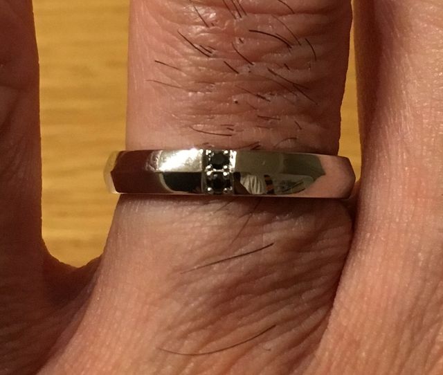 年が年なんで、あまり派手ではないけど、おしゃれな感じの指輪が欲しかったのですが、黒いダイヤがさりげなくアクセントになってるのと、指輪自体も立体感のあるデザインで、さりげなくお洒落な感じが決め手となりました。
