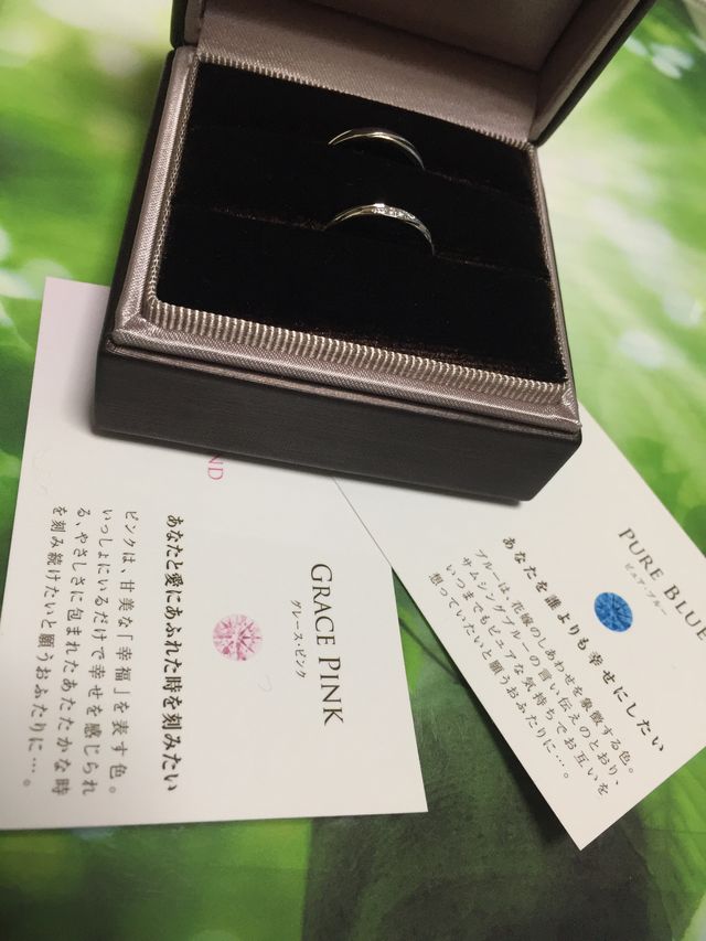 最初はダイヤがついていないものをと考えていましたが、ダイヤがついてても主張しない感じで価格がお手頃であったためこの指輪にしました。