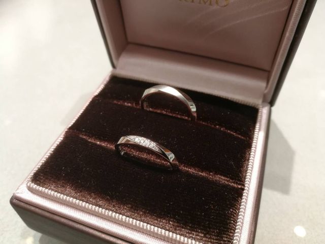 人と変わったデザインにしたいと思っていたのですが、指輪自体が曲線になっているものは付けてみて違和感があったのでこのデザインにしました。斜めにダイヤが入っているのが気に入っています。男性の方もマットかこうにしてもらい満足しています。