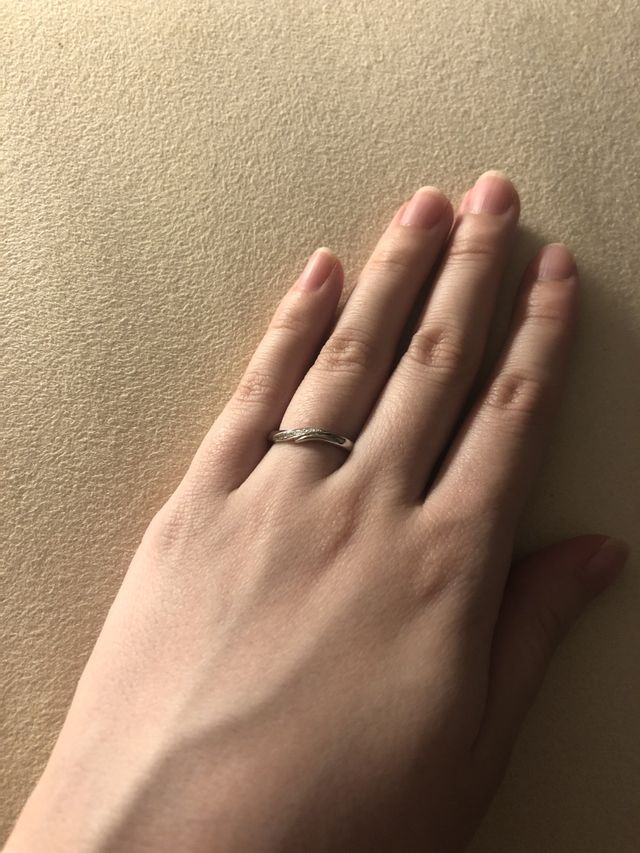 人気のデザインを試させて頂いて即決定しました。夫の結婚指輪も同デザインです。男性のものはメレダイヤの部分がつや消しになっています。ウェーブ型で着けた感じがスラリとしており、メレダイヤがぎっちり配置されているのでキラキラととても綺麗です。指輪に関するコラムなど、
