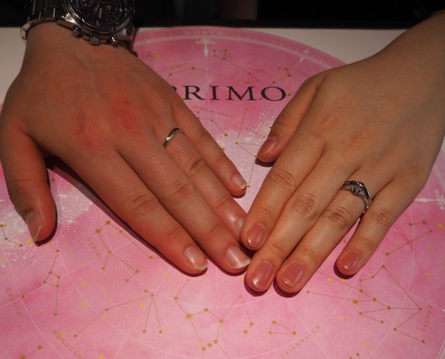 何十年と着け続けても飽きがこない美しいデザインに惹かれて、こちらの指輪を2人で選びました。