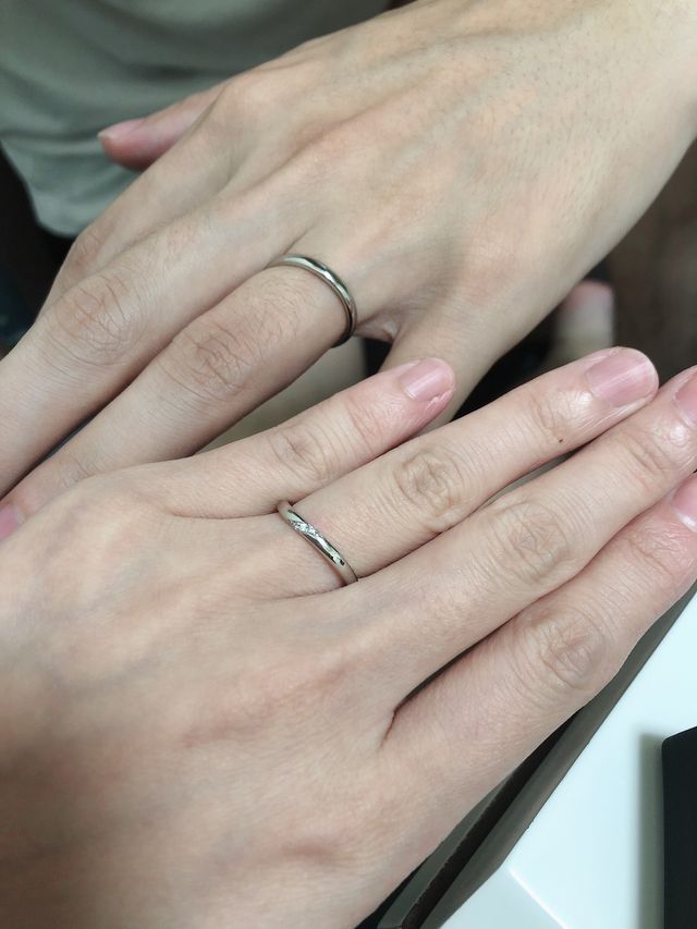 本当は日常使いしやすいダイヤ無しの結婚指輪を探していましたが、控えめだけど綺麗に輝くダイヤの指輪に一目惚れしてしまいこちらの商品にしました。