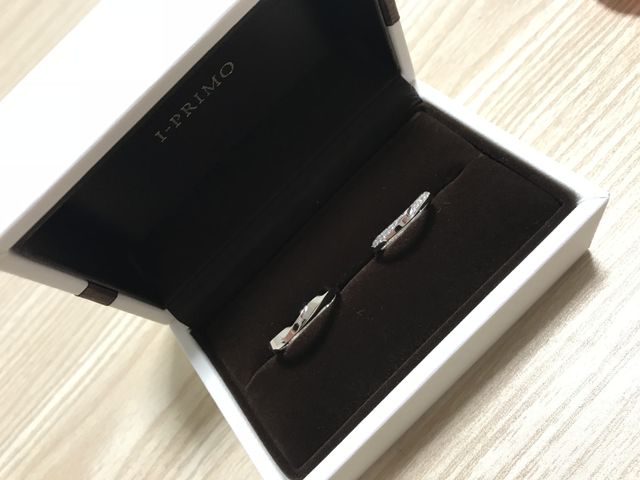 ダイヤがたくさん入ってる指輪を探していたのですが、周りの人とあまり被らないデザインが良く、この指輪にしました。また旦那のデザインもかっこいいものだったので2人とも気に入り、購入しました。ダイヤがキラキラと輝いていてお気に入りです。