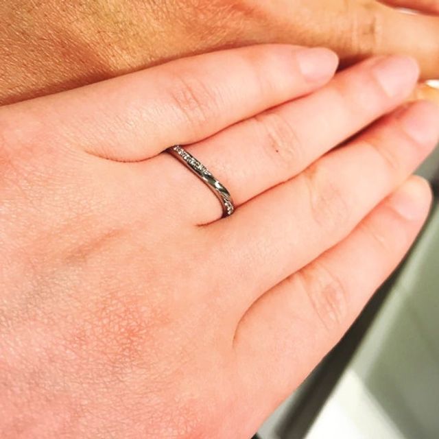 一見よくあるデザインに思えますが、よく見るとあまり見かけないデザインで上品な印象です。また指が綺麗に見えるようにデザインされており、しっかりと指にフィットしていますね。自然な感じのウェーブラインが素敵で気に入っています。