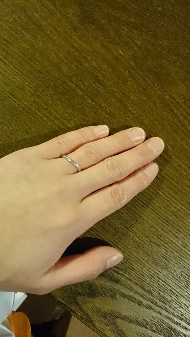 婚約指輪と同じシリーズの物で、一緒に着けても合うもので、自分の指にも似合っていたのでこの指輪にしました。