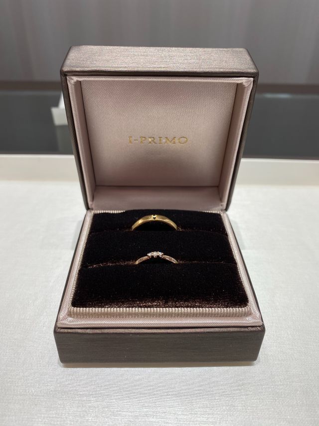 担当の方にもこのデザインはとても珍しいものだから、人と被らないほうがいいのであれば、こういうのもオススメですよと助言されて2人で決定しました。今ではお気に入りです。