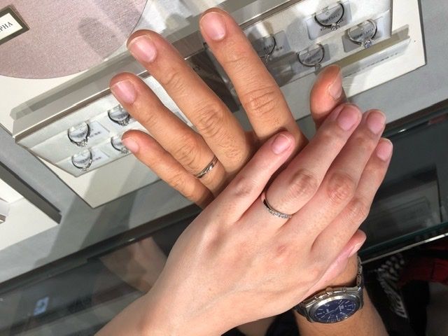 初めて店舗に訪れた時、私達は普段指輪をつける習慣もなく知識が全くない状態でしたが、担当者の方がデザインの提案から神話のお話なども丁寧に教えて下さり、また2人で気兼ねなく選べるように一度席を外してくれたりの配慮や誠実さが伝わり、心から感謝しています。