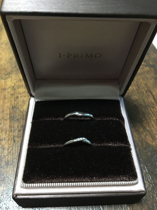 いくつかあるサンプルの中から1番最初に選んだ物です。旦那が私が先に選ぶよう促し、直感で目に入った指輪を手にしました。すると担当の方が、「まさにその指輪は後ほど勧めたいと思っていた物です!」と。担当の方は旦那が婚約指輪を選んだ際に担当してくださった方。私が手に取った指輪は婚約指輪とデザイナーが同じで、お互いの好みが一致した事に感動して下さりました。婚約指輪と一緒にはめた時のバランスも良いのも決め手でした。