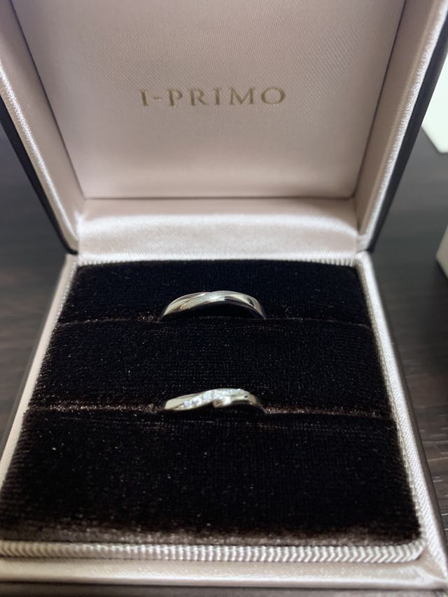 アイプリモの婚約指輪をいただき、アフターフォローもしっかりしていると知り、結婚指輪も同じブランドにすることにしました。店員さんから指輪にまつわるエピソードを伺い素敵だったこと、他の指輪と少し違うデザインであったことが決め手でした。