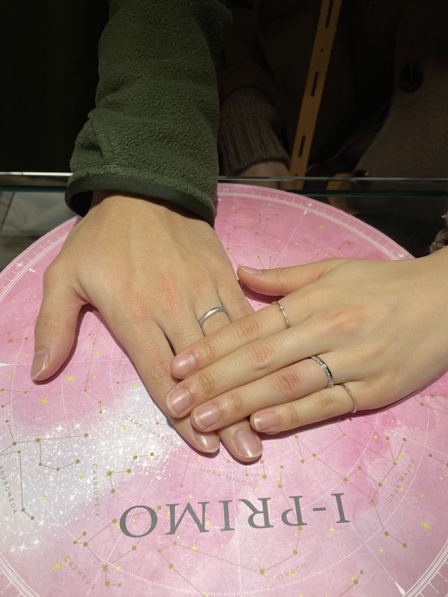 他の店舗でも指輪の検討をしていましたが、アフターサービスに不安があり迷っていました。アイプリモさんでアフターサービスのお話を聞き、アフターサービスが充実しており、傷が付いても気にせず安心して毎日着けれそうです
