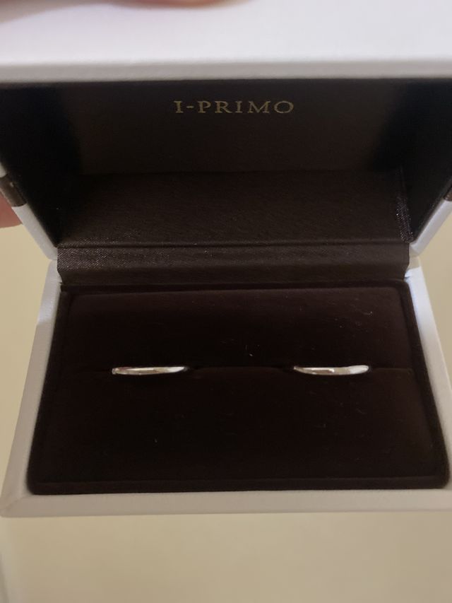 指輪を決めるにあたっての決めては、普段仕事で指を使うので、支障の出ないシンプルなデザインの指輪にしました。更に人と同じにならないように私たちだけのオリジナルの指輪になるように内側に刻印ができるのがとても魅力的でした。