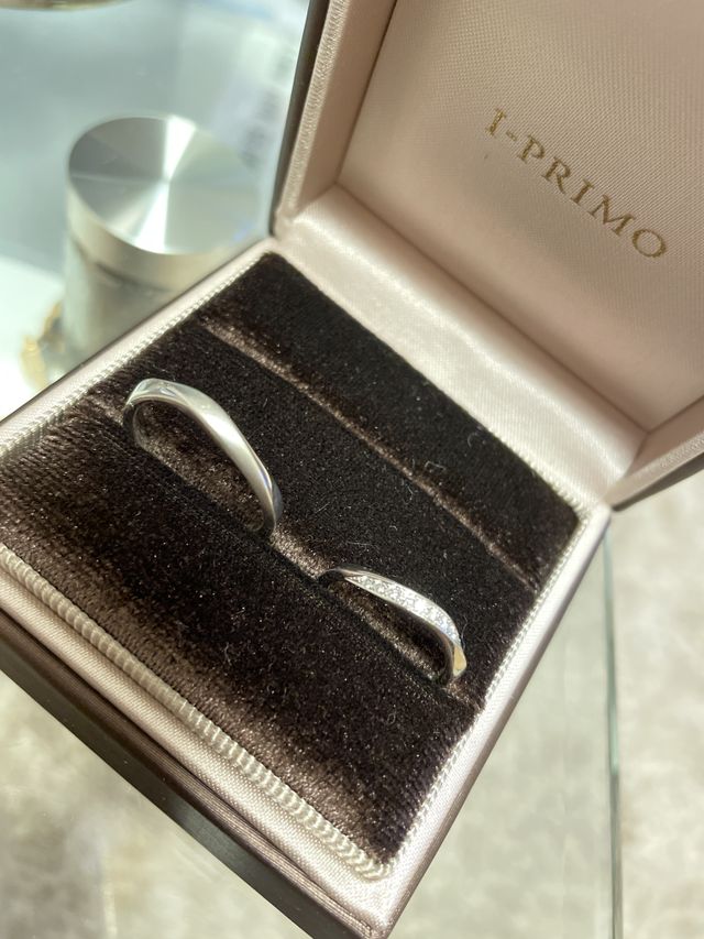 デザインが可愛くて即決でした。婚約指輪がダイヤがついてるものだったので、結婚指輪はシンプルがいいと思っていましたが、色々見させて頂き、シンプルだけどキラキラが目立つものを選びました。旦那さんの方もマット感がワンポイントになり、気に入っていました。