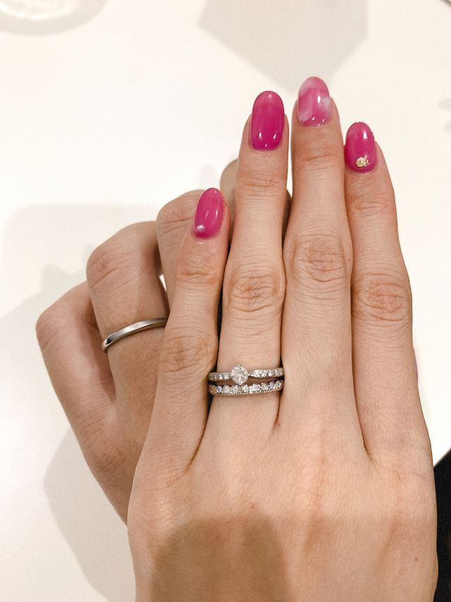 など、色々なものを試した中自分の思うデザインであり、婚約指輪に1番合うものだったから。