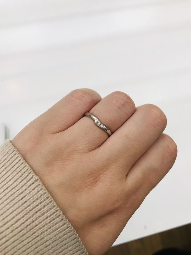 婚約指輪と重ね付けできるものを!と結婚指輪を探していました。色々なデザインのものを付けさせて頂いた結果、フィット感や婚約指輪とのデザインの相性などトー