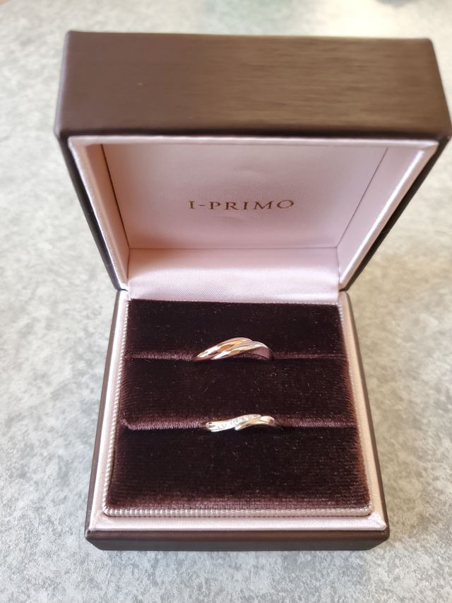 少し湾曲した形で、指にフィットするものを探していました。以前からピンクゴールドが気になっていたのですが、2色のコンビネーションが綺麗で、ダイヤも程よく配置されていて、普段遣いにもなじみそうなので選びました。