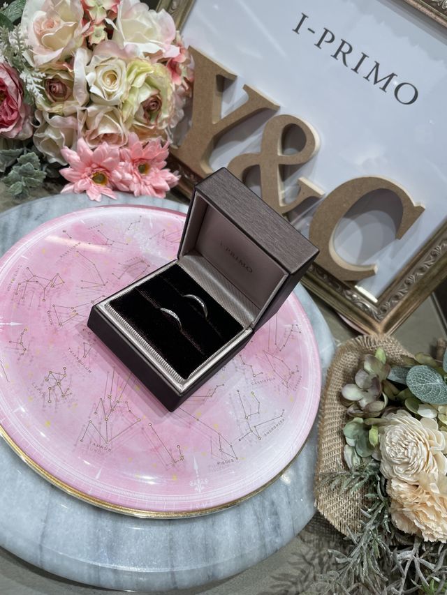 婚約指輪は別の店舗で彼からプレゼントされ、重ね付けして似合う結婚指輪を探していました。別店舗でも回ってみましたが、選ぶならこれかな?というぐらいの気持ちのものしかなかったのですが、アイプリモさんには私のタイプの物が沢山ありどれにしようか迷うぐらいでした。オシャレで理想の指輪に出会えました。担当してくださった方もとても親切で楽しく指輪選びが出来ました!