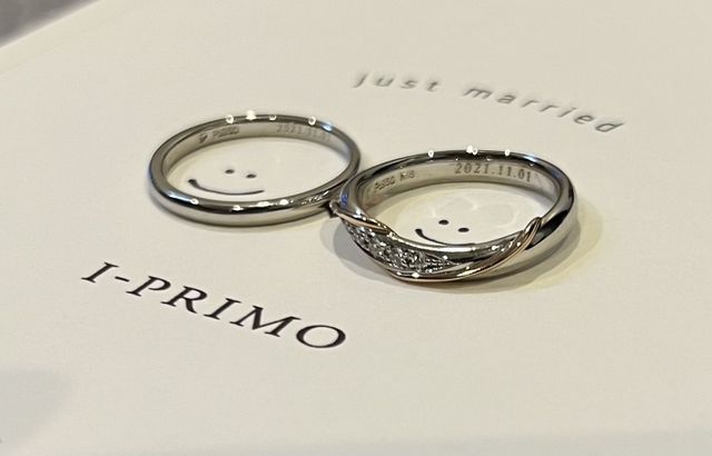 アイプリモ福岡天神店で購入したので、店内は狭めなのですが、そんなことを感じさせない高級感、清潔感があり、店員さんの会話も親しみやすく相談もしやすいので、このお店を選んで本当に良かったと思っております。指輪が届くのが入籍後の予定だったのですが、特急で対応してくれて、入籍前に届き、心から感謝しております。