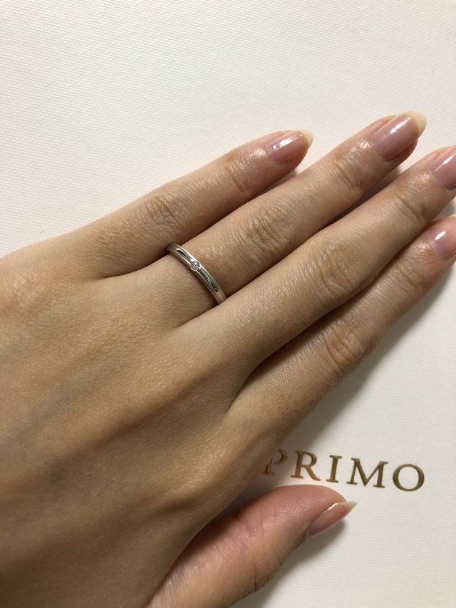彼とお揃いの結婚指輪にしたかったのですが、彼はマットのネイトを気に入り、ネイトの女性用を試着してみましたが、光沢がないので少し物足りなさを感じ、お揃いにしたいけどどうしようか悩みました。そんな時にスタッフの方が、ネイトとお揃いにも見える、マットと光沢が混ざったソールを提案してくださいました!