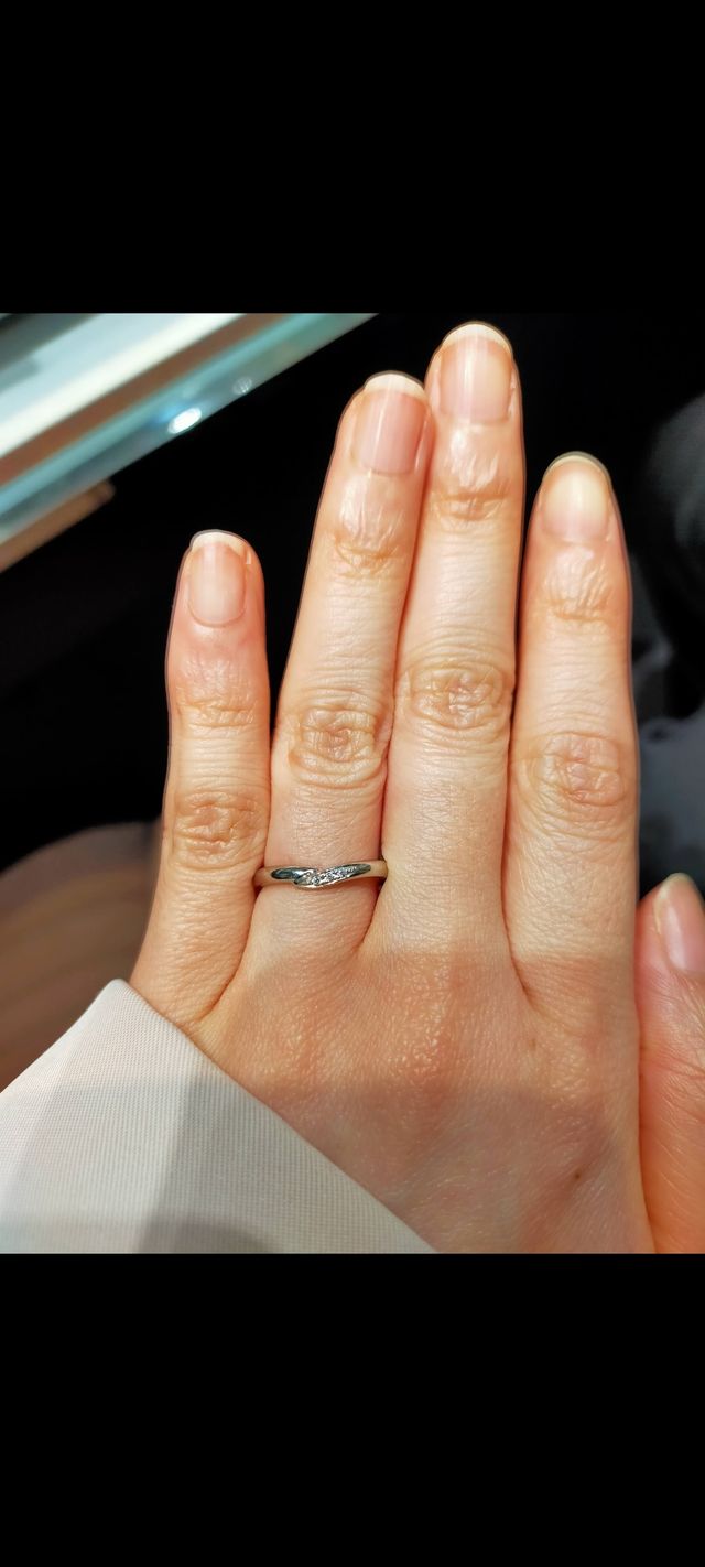 V 字型ウェーブ型ストレート型幅広く見ている中で1番しっくりしたのがこの指輪でした。ダイヤありにするかどうかもまだ迷っておりましたが、個別にお願いすれば無しにすることも可能なようでした。また、握り心地も良かったです。