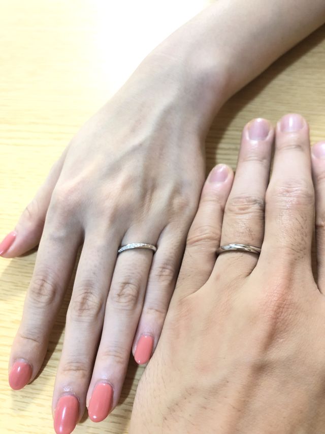 まず店の雰囲気が良い。店員さんも明るくとても喋りやすかったです。指輪のデザインはシンプルだけど、店員さんの話を聞くとすごく凝っているのだなと感じた。着用した感じは、肌と密着する部分が滑らかで付け心地が良い。また、アフターサービスがしっかりしている。