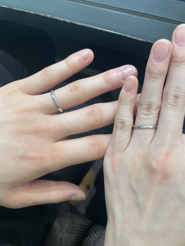 真ん中にダイヤが三つ入っていることや、指輪の意味を聞いて素晴らしいと思いました。また、ストレートの指輪を探していたため、気に入りました。毎日着用するためお気に入りです。