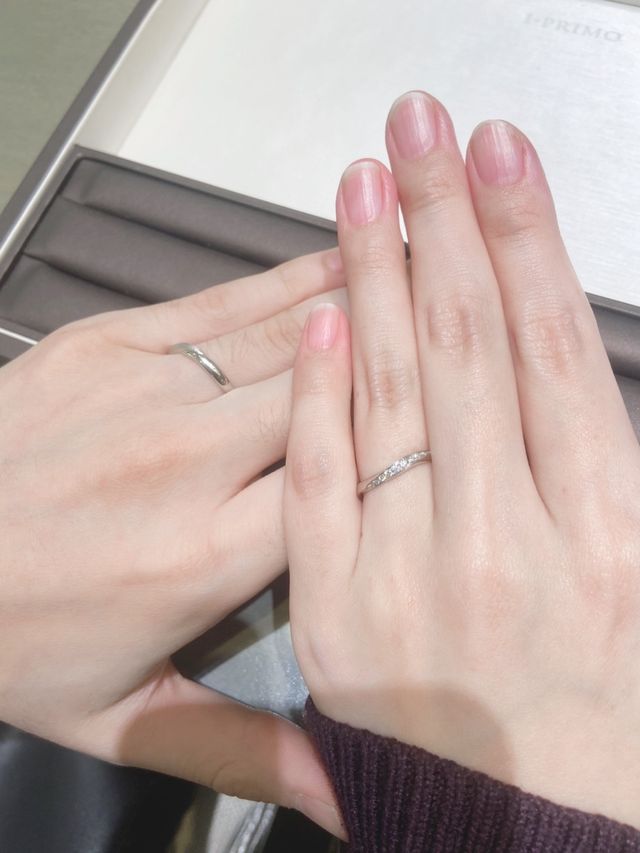 あらかじめネットで好きなデザインを選んでいたが、来店時に無料で簡単な質問と指の形等をみて頂き、合う指輪を幾つか選定してもらい、その中から互いの気に入ったものを決めました。彼と共にとても気に入っています♥