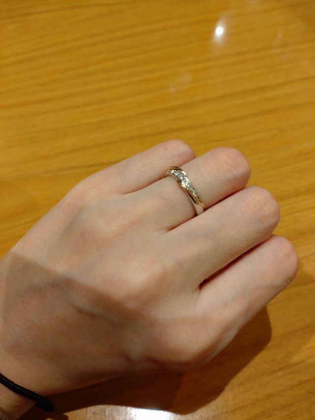 価格もお手頃でデザインもオシャレだったので、これに決めました。ありきたりな結婚指輪ではなく、少し個性がある感じに特別感を感じ、これから一生この指輪をつけて生活するのかと思うとワクワクします。シルバーとピンクゴールドの2色使いが気に入っています。