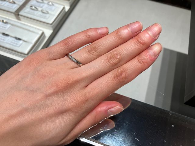 立川店にお伺いしました。駅近で綺麗で明るい店内でした。店内はそんなに広くはありませんが、色々なデザインを提案していただき、購入したい指輪のイメージが湧
