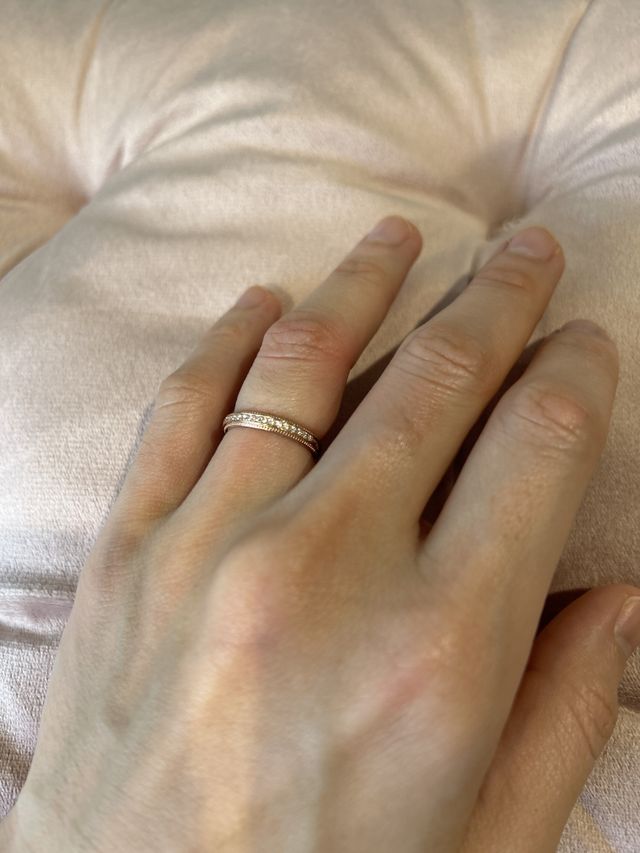 仕事用結婚指輪を探していました!シンプルだけど、さりげなく品のある物を探していました!購入したリングはデザインとピンクゴールドの色に一目惚れ!私は肌が白いので、とても肌に馴染んでました。ジュエリーのピンクゴールドは初めてでしたがとても気に入っています。