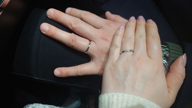 シンプルながら、ちょっとデザインのある指輪で気に入りました。とても指通しもよく、スルッと指に入り、馴染みが良いです。指輪の幅、厚さが薄めなので付けてる感じがしないくらい自然な指輪です。女性の方には3粒ダイヤが入っています。