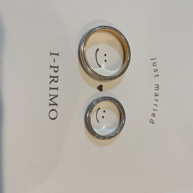 それぞれ好みのデザインで指輪を購入しようかと思いましたが、こちらの指輪は女性用はキラキラしたダイヤがついており男性用はゴールドとシルバーの2色という2人とも気に入ったデザインだったため同じ形のものを購入しました。