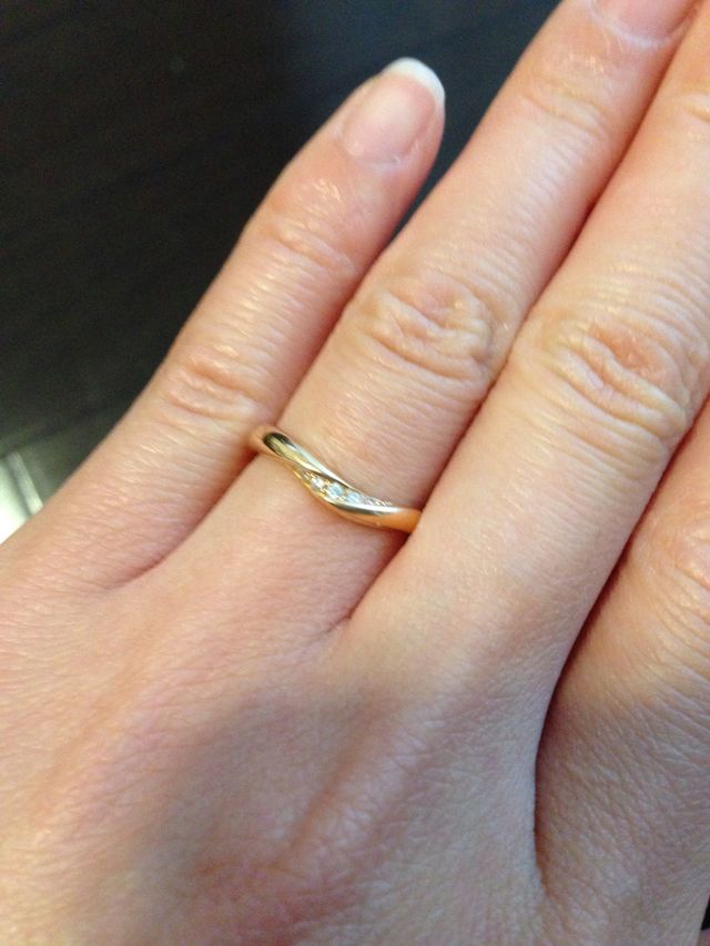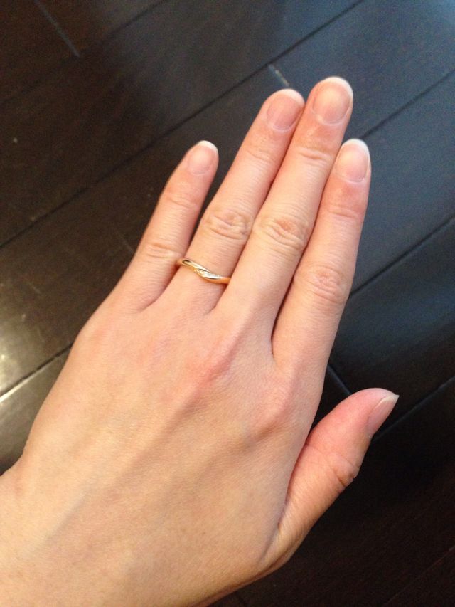 以前に購入していた婚約指輪と一緒に付けて形がフィットするかどうかにポイントを絞って選びました。色も婚約指輪と同じで色黒の肌に馴染む様にピンクゴールドに変更しました。