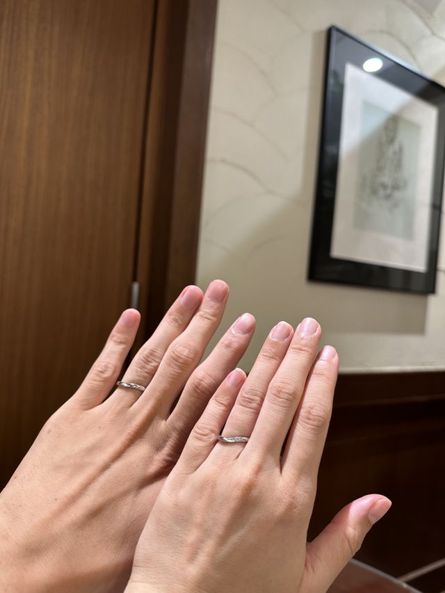 2人ともウェーブのデザインが希望で私はダイヤがついているものが良いと思い探し始めました。何軒か見て回る中で、ラザールダイヤモンドさんはその中でもサイズアフターサービスが充実していたことが購入の決め手になりました。