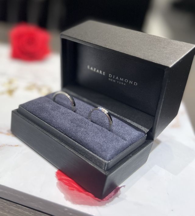 黒を基調とした内装で、落ち着いて指輪選びができます。最初は予約せずに飛び込みで行ったにも関わらず丁寧に対応いただきました。他にも数軒回りましたが、メインで担当いただいた若手の方からベテランの方まで、ラザールの接客が一番よかったです。