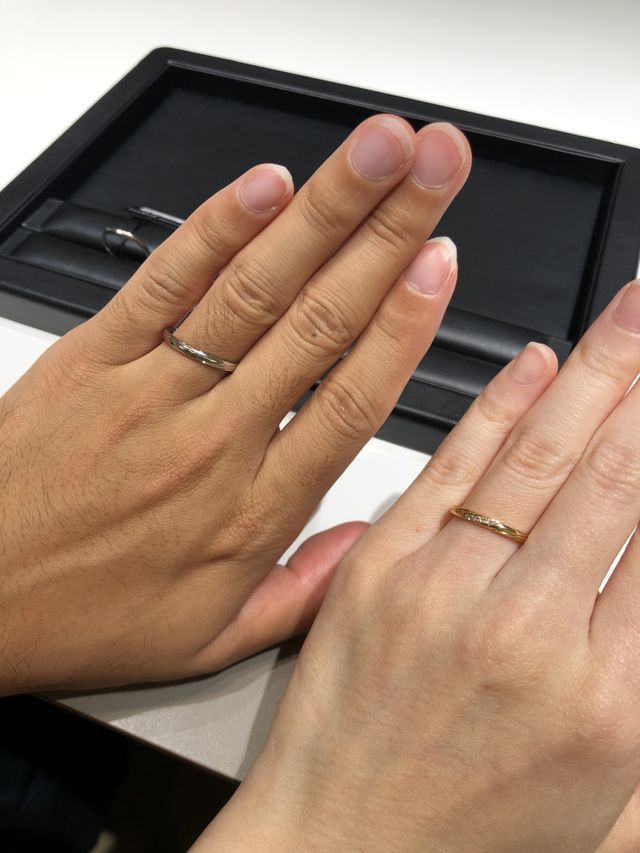 シンプルなストレートの指輪を探していました。私がゴールド、彼がプラチナで色違いを希望していたので、少しデザインが入ったお揃い感も欲しく、この指輪を提案してもらいました。他のブランドでも似たデザインのものを見ましたが、こちらは比較的深めにラインが入っている印象でした。