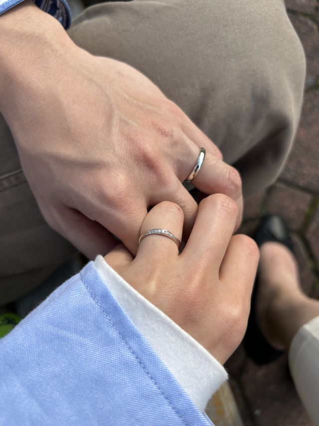 結婚指輪らしいシンプルさとエレガントさで、年をとっても長くつけられると思い選びました。