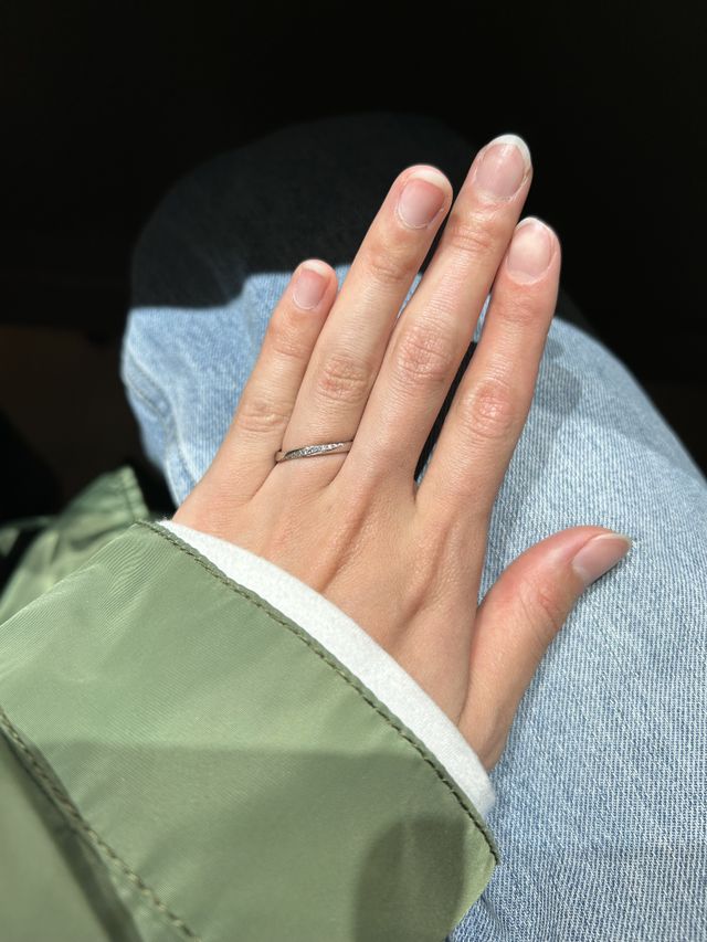 歳をとるにつれ、指が太くなったりシワができたりすると細いリングよりも少し幅がある方が合うそうです。長い目で見てもおすすめです。