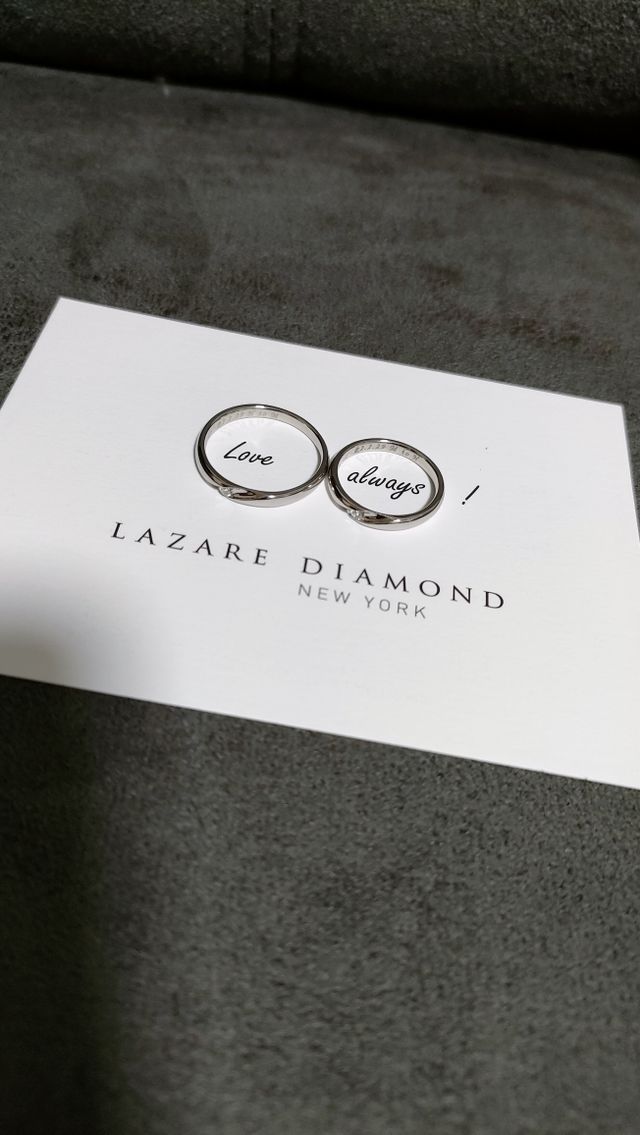 そこで、あまり見たことないデザインとダイヤモンドの輝きに惹かれ、当日にラザールダイヤモンドさんで購入しました。